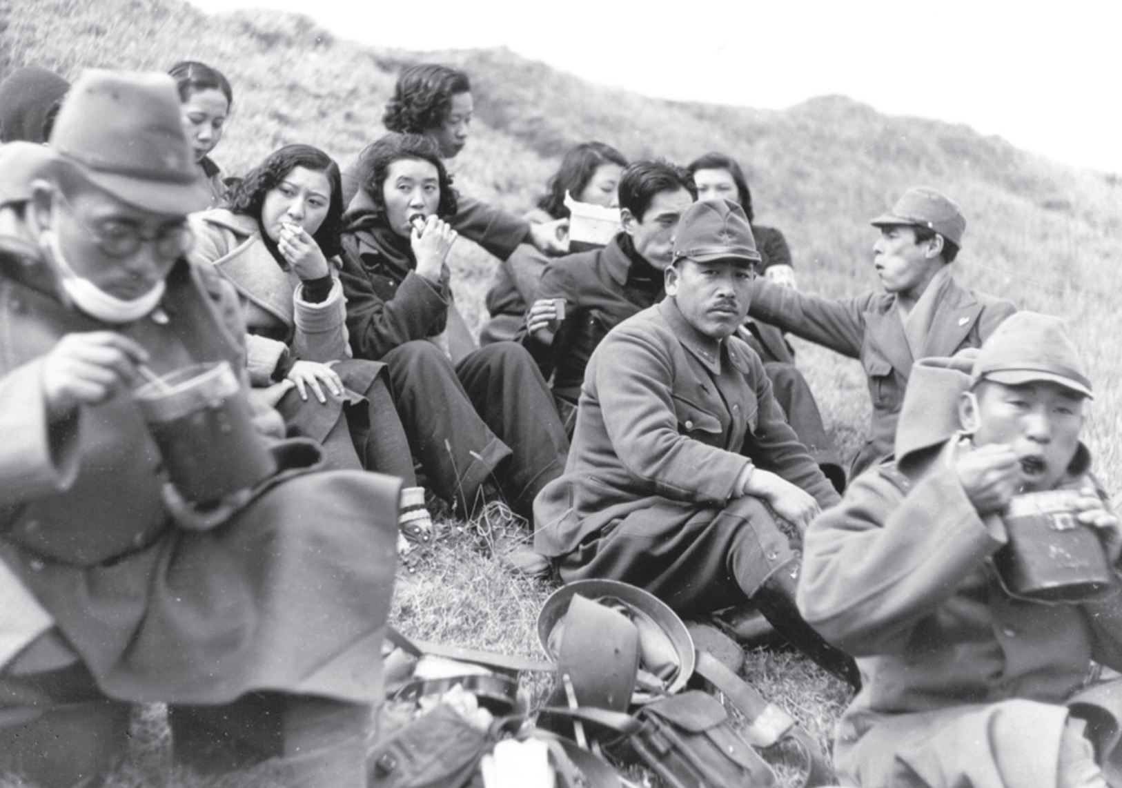 年、兵士たちと一緒に露営の食事