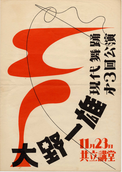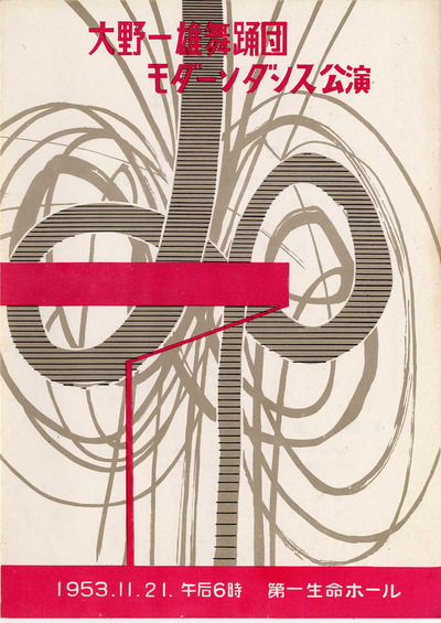 大野一雄自身のモダンダンス・リサイタルは1959年まで計5回行われました。公演チラシとポスターのデザインがじつにモダーンです。それぞれの公演についての詳細は下記リンクからご覧ください。