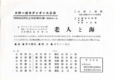 ※このページに戻ってくるには、各公演ページ一番下にある「関連ページ」より、「モダーンダンサー 大野一雄」をクリックしてください。以下、他の資料でも同様です。また、画像をクリックすると当該資料のページを閲覧できます。