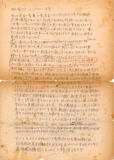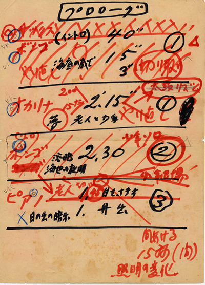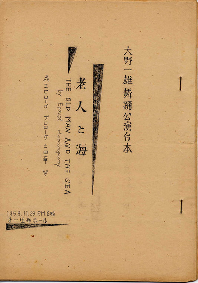 1959年の公演「老人と海」については、多くの資料が残されていました。台本、リハーサルと本番の写真、創作メモ、音楽の録音テープ、手作りポスター、チラシ、プログラム、そしてヘミングウェイに宛てた手紙の草稿まで、ダンスアーカイヴ構想にて保管されています。